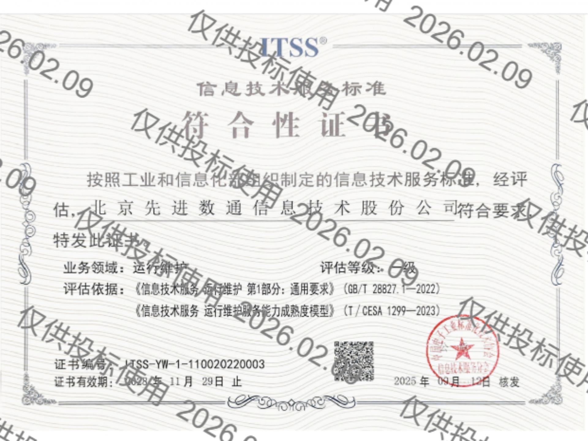 • ITSS切合性证书成熟度(一级)