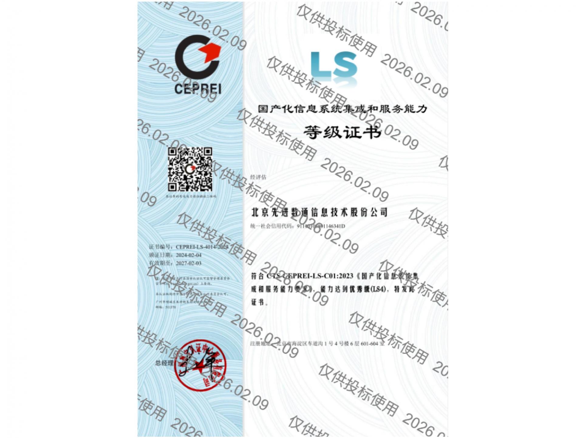 • 国产化信息系统集成和效劳能力四级证书